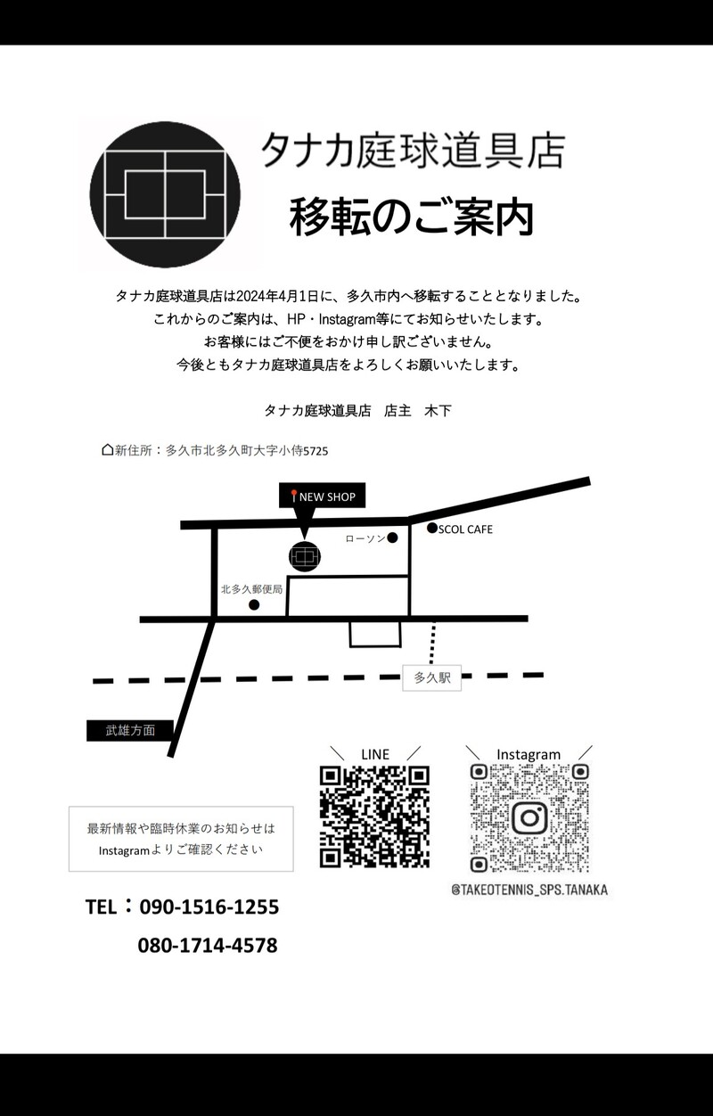 タナカ庭球道具店は2024年4月1日に、多久市内へ移転いたしました。